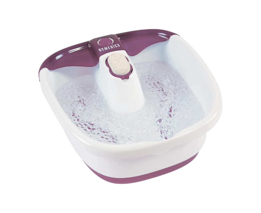 The HoMedics Bubble Mate Foot Spa offers a luxurious way to relax tired feet with bubble-turbo strips, massage nodes, and a removable pumice stone to smooth rough skin. Its keep-warm function maintains the perfect temperature, while ergonomic design and pedicure attachments make it ideal for home spa treatments. Add essential oils or bath salts for a calming soak and enjoy a revitalizing foot massage anytime.
