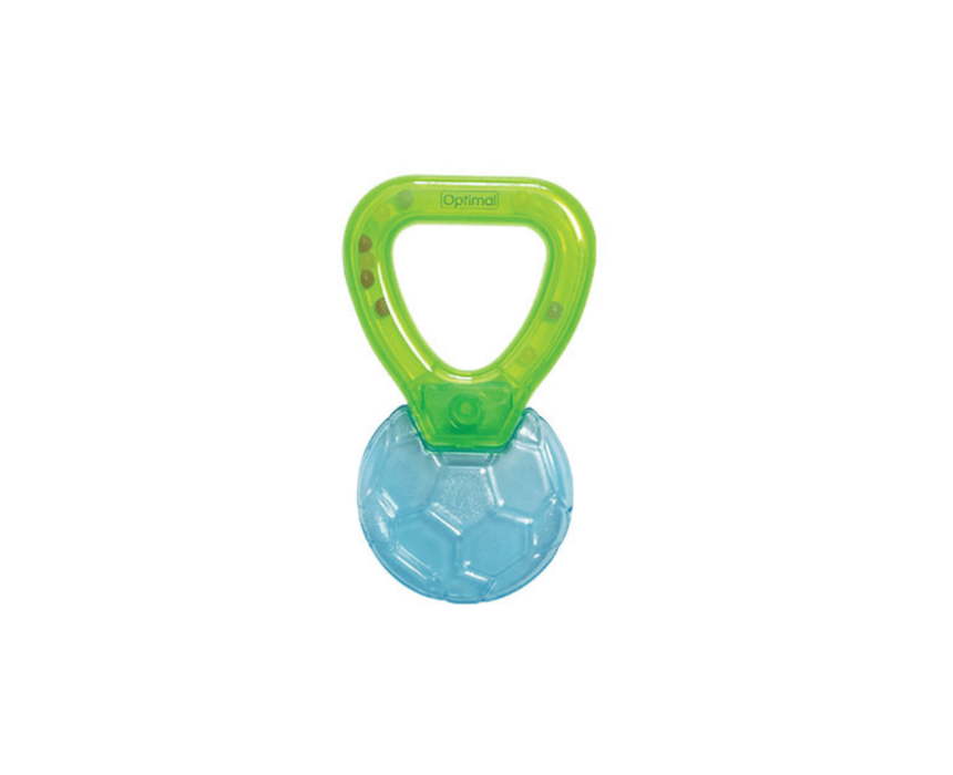 Designed for babies 4 months and above, this football-shaped water-filled teether provides soothing relief for sore and teething gums. Its easy-grip design helps little hands hold and chew comfortably while supporting early oral development.
