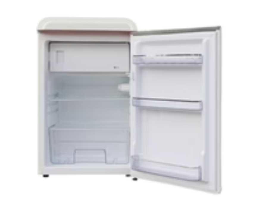 The FR180VR is a charming vintage retro refrigerator in sleek red with a retro metal handle, featuring a freezer compartment, mechanical temperature control, and manual defrost function. Its classic design adds a nostalgic touch to any kitchen while providing reliable modern cooling. Place it in your kitchen or kitchenette to combine style and functionality effortlessly.