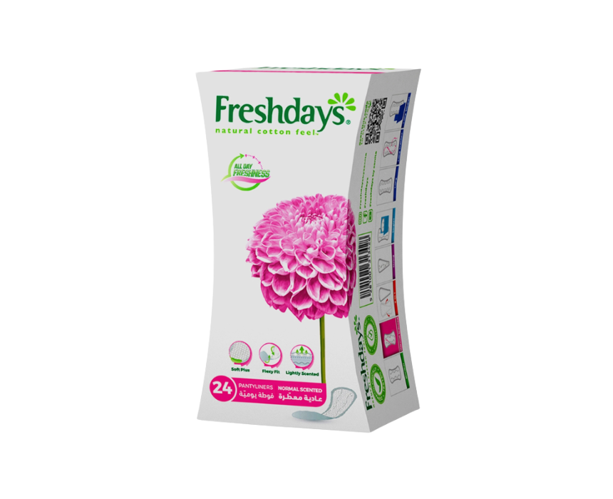 Freshdays Normal 24 Scented sanitary pads offer reliable daily protection for light to moderate flow with a soft, skin-friendly surface and absorbent core that keeps you dry and comfortable. Their subtle fragrance provides a refreshing feel, while the slim, flexible design ensures a secure and discreet fit. Perfect for everyday use, the 24‑pad pack combines convenience, comfort, and confidence.