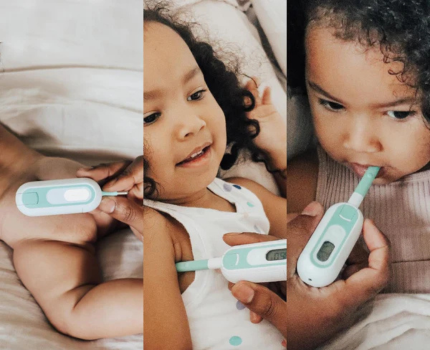 The Frida Baby 3-in-1 Thermometer offers fast, accurate, and versatile temperature checks for babies, toddlers, and kids. Its flexible, baby-safe tip allows rectal, underarm, or oral readings in 10 seconds, while the color-coded fever indicator and memory recall help parents monitor trends easily. Waterproof and easy to clean, it provides a safe, reliable, and stress-free solution for everyday temperature monitoring.