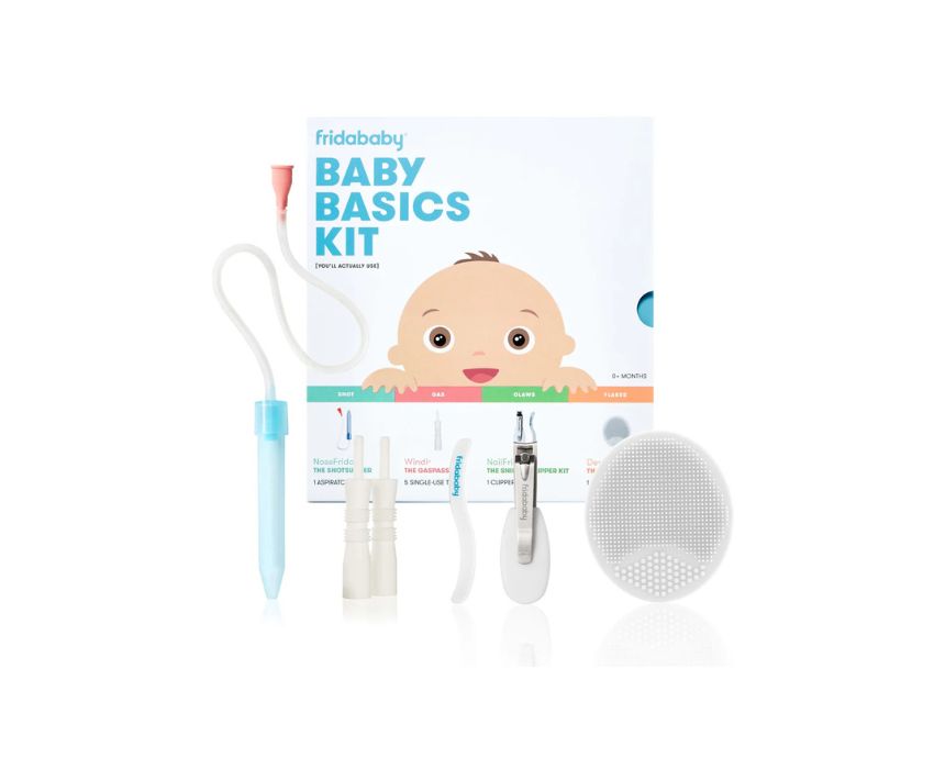 The FridaBaby Baby Basics Kit is an essential set for new parents or baby showers, featuring all the must-have tools to keep baby healthy and clean from head to toe. It includes everything needed to gently clear stubborn boogers, relieve trapped gas, trim tiny nails safely, and treat cradle cap effectively. Compact and easy to use, this kit simplifies daily baby care with practical, parent-friendly solutions.