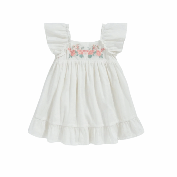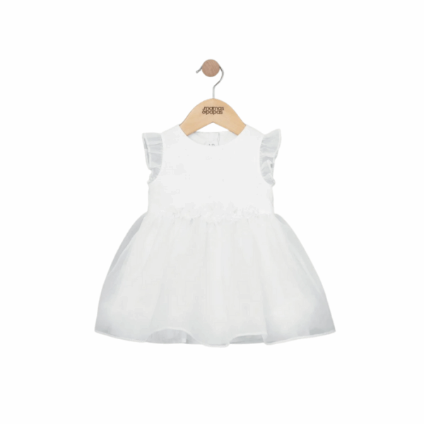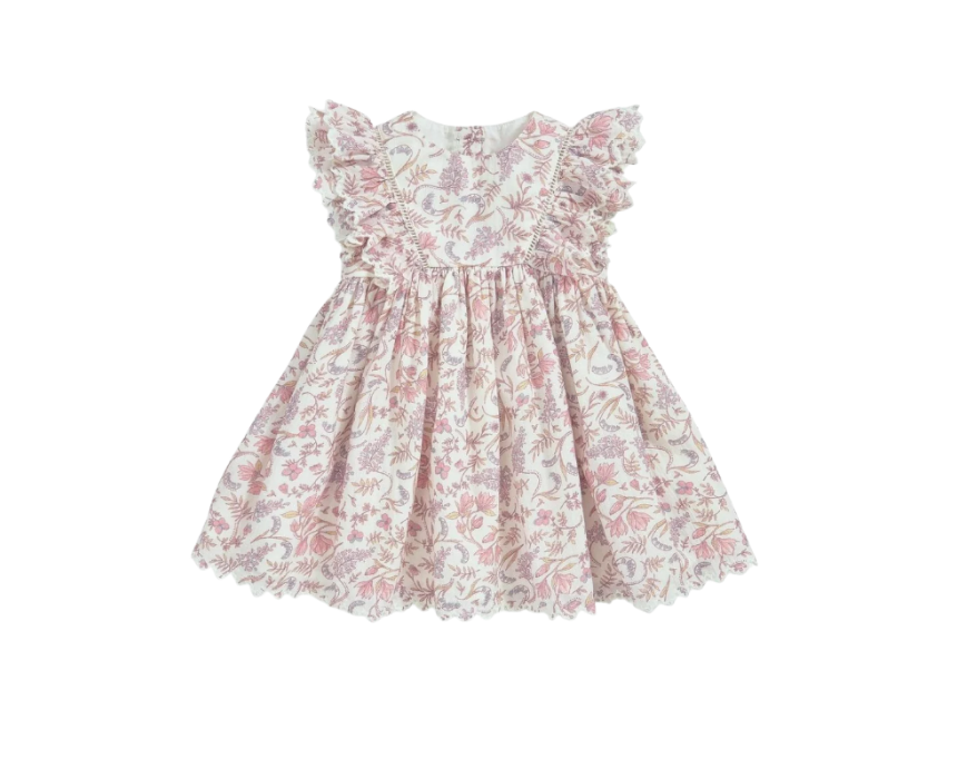 The Frill Floral Print Dress for babies is a short-sleeved design featuring a 100% cotton sateen bodice with soft cotton lining and tulip sleeves for added comfort. It showcases a triple-layer skirt with mesh tulle and a triple frill underskirt, finished with a back opening and three mock wood buttons, created as part of an exclusive Laura Ashley collaboration inspired by iconic archival prints. Style it with soft baby shoes or a cardigan for special occasions, celebrations, or memorable outings.