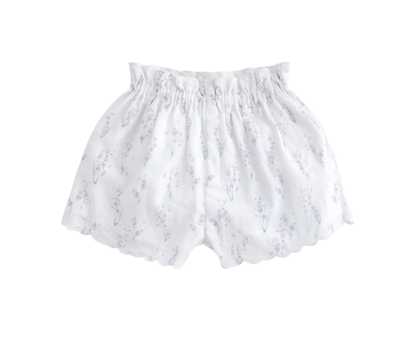 This Frill Sleeve Top and Shorts Set in lavender print is a sweet and comfortable 2-piece outfit, featuring a top with frill sleeve detail and front button opening, paired with paperbag-style shorts with an elasticated waistband and scalloped-edge hem. Made from 100% cotton, it’s perfect for all-day wear and can be styled with sandals or sneakers for a playful, summery look.