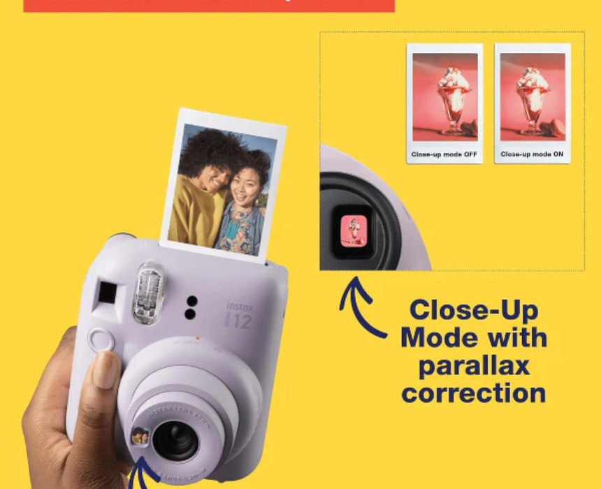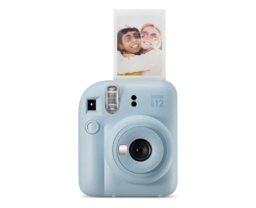 The Fujifilm Instax Mini 12 Instant Film Camera in Pastel Blue captures bright, credit card sized instant photos with simple point and shoot operation and a built in selfie mirror for perfectly framed self portraits. Its compact, lightweight design makes it easy to carry to parties, travel adventures, or everyday outings. Wear it crossbody with a camera strap or pair it with casual street style for a fun, creative accessory that stands out.