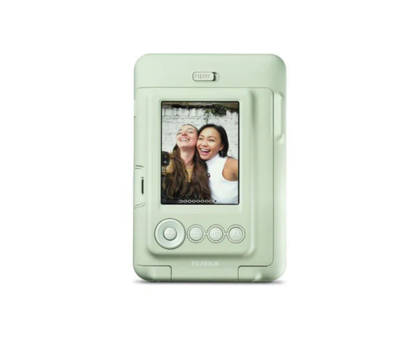 The Fujifilm Instax Mini LiPlay Hybrid Camera Smartphone Printer in Matcha Green combines instant photography with smartphone printing, letting users capture photos or print images directly from a connected device. Its compact, lightweight design is ideal for travel, parties, and everyday memories. Wear it with a wrist strap or style it crossbody to complement casual, street, or minimalist outfits with a fresh tech accent.