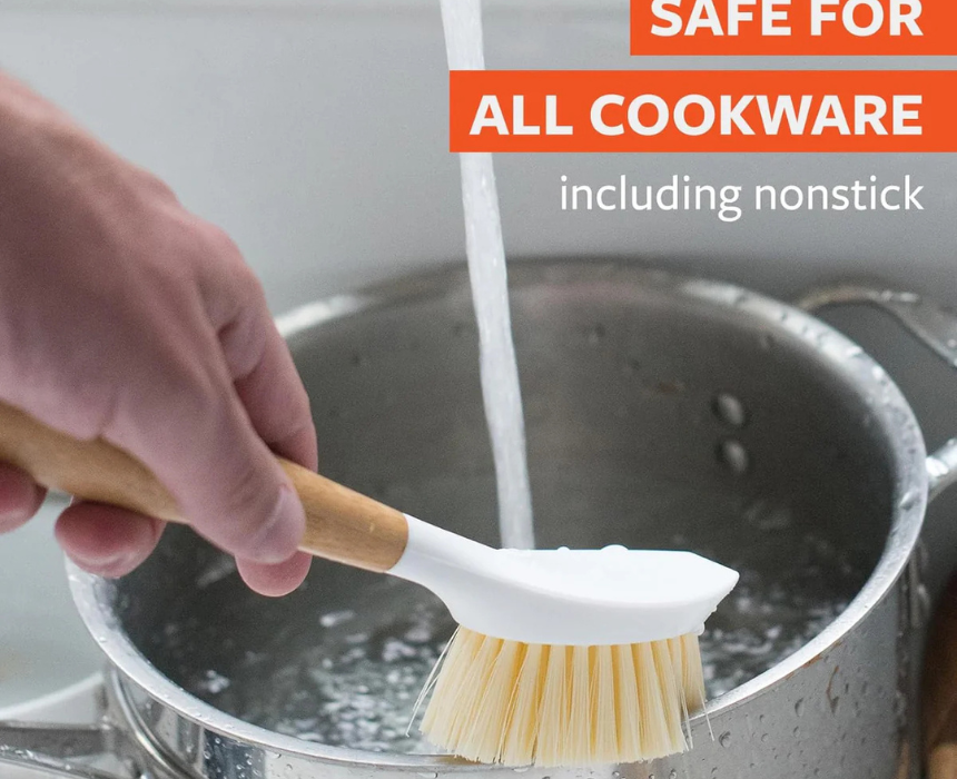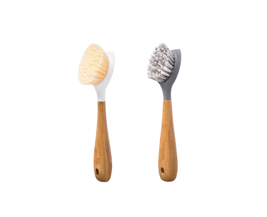 The Full Circle Be Tenacious Bamboo Dish Brush Set includes durable dish brushes with natural bamboo handles designed for effective everyday dishwashing. Ideal for scrubbing plates, pots, and pans, this eco-friendly set supports a cleaner kitchen routine. Style it by displaying the brushes in a countertop holder or sink caddy to add a natural, organized look to the space.