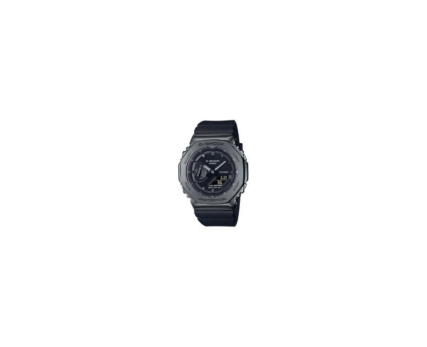 The G SHOCK GM 2100BB 1AJF is a solar powered toughness watch that continues the legendary G SHOCK legacy first introduced in 1983. Based on the metal covered series, it features a sleek blacked out finish that combines rugged durability with modern minimalist style. Designed for everyday wear or active use, it pairs effortlessly with streetwear, casual outfits, or sporty looks.