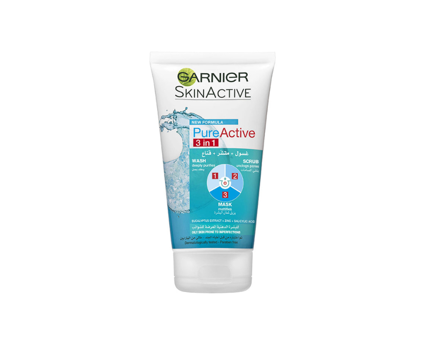 Garnier Pure Active Gel 3 In 1 helps cleanse, exfoliate, and treat acne-prone skin in one step. Its gentle formula removes impurities, unclogs pores, and brightens the complexion. For best results, use as a daily face wash, a scrub a few times a week, or a mask to deeply purify and refresh the skin.