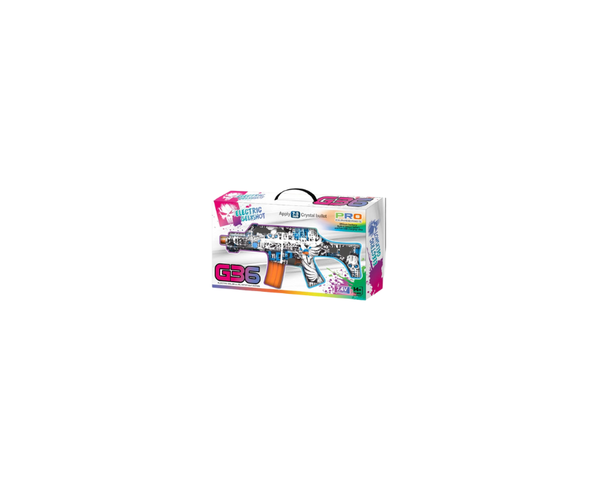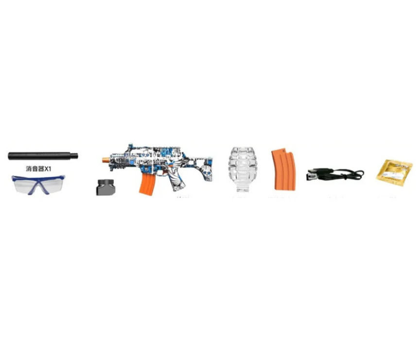 The Pro Gun Series Gel Ball Blaster Toy Gun is an electric outdoor blaster that fires 7 to 8 mm eco friendly gel balls which burst on impact for safe and exciting play. It features an automatic firing system, a rechargeable 7.4 V battery, and includes protective goggles for extended fun, and it is best styled with casual outdoor wear and eye protection for action packed play sessions.