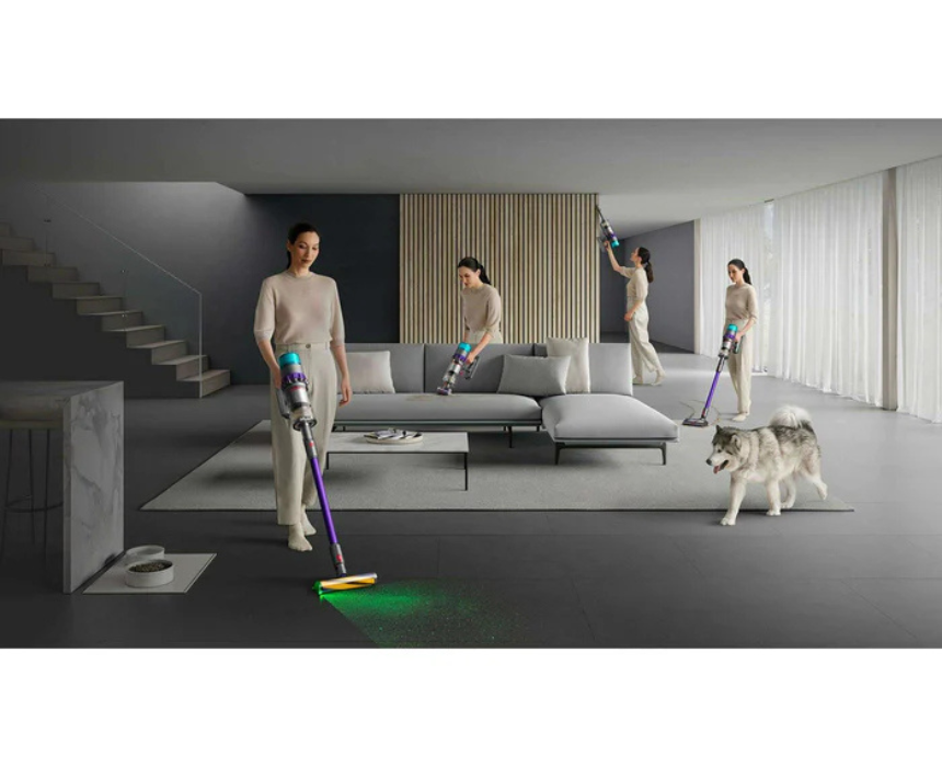 This Dyson Gen5 Detect cordless vacuum delivers powerful whole home cleaning with HEPA filtration, particle detection, and a Fluffy Optic cleaner head that reveals invisible dust on hard floors. Featuring a Gen5 Hyperdymium motor with 280 Air Watts of suction, up to 70 minutes of runtime, LCD proof of a deep clean, and single button power control, it automatically adjusts suction for optimal performance. Designed for everyday use, it easily transforms into a handheld vacuum for stairs, sofas, mattresses, and tight spaces.