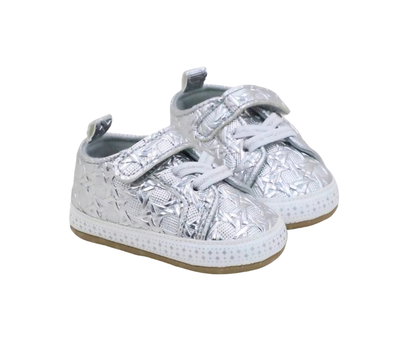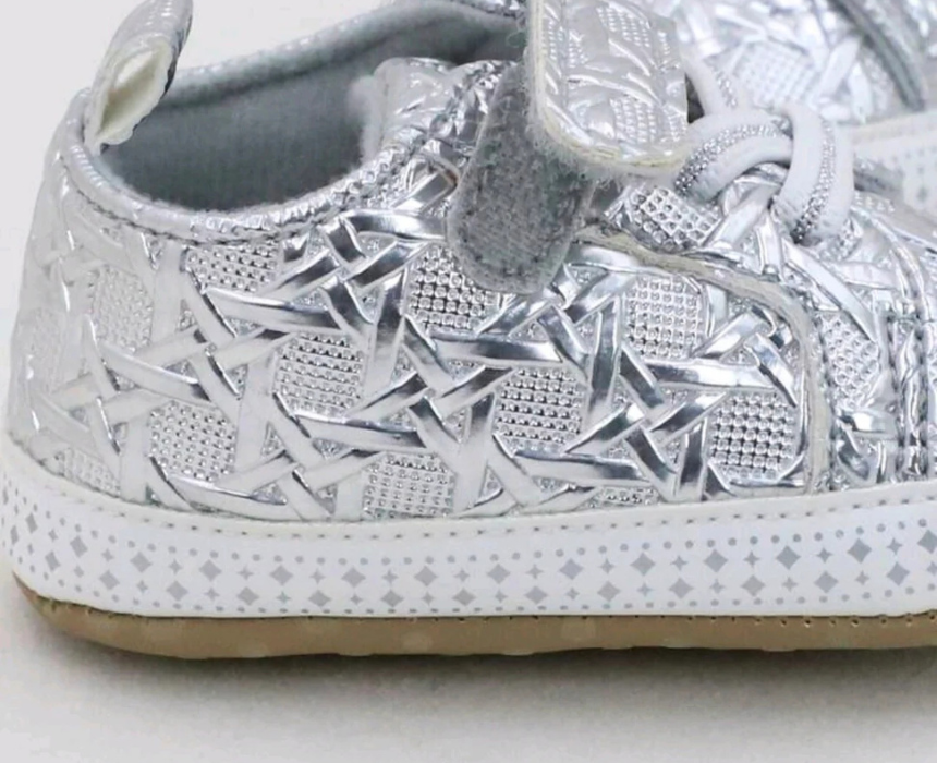 These silver sneakers feature a geometric 3D design, combining modern style with comfort for everyday wear. Ideal for pairing with casual outfits, jeans, or sporty looks, they add a bold and stylish touch to any ensemble. Lightweight and versatile, they are perfect for active days while keeping feet comfortable and on-trend