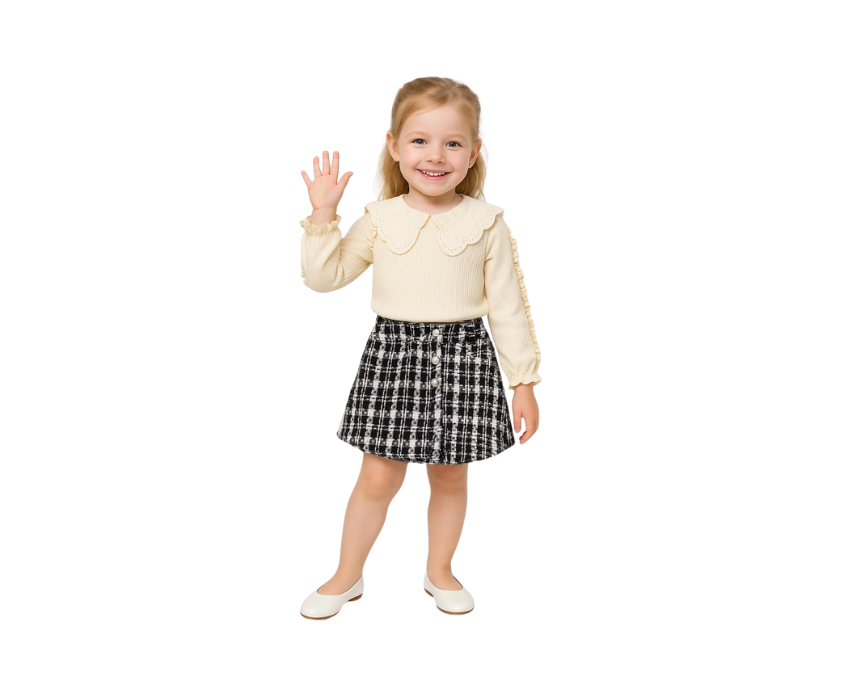 These Girls Checkered Shorts offer a stylish and comfortable fit for ages 5–8, featuring a classic black checkered pattern on soft, breathable fabric. Perfect for school, playtime, and casual outings, they add a trendy and versatile touch to any outfit.