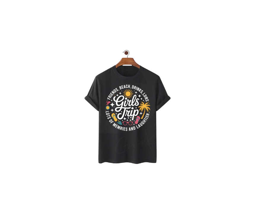 Girls Trip T-Shirt made from 100% high-quality cotton for a soft and breathable feel. Features durable DTF printing for vibrant, long-lasting designs. Available in classic white and black. Perfect for a casual yet meaningful statement.