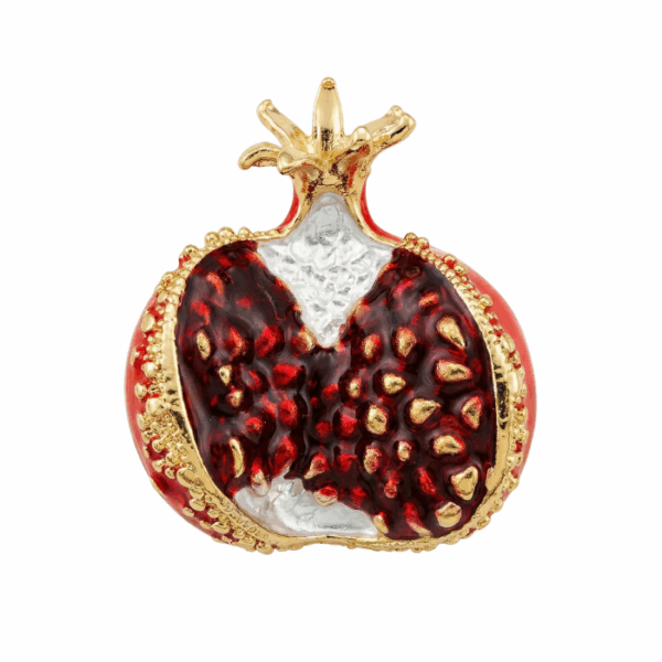 This glossy red cherry brooch features sparkling crystal leaves set in a polished gold tone, creating a playful and elegant accessory. Designed to stand out, it can be styled on jackets, dresses, scarves, or handbags to add a vibrant and charming touch. A versatile piece that enhances both casual looks and special occasion outfits.
