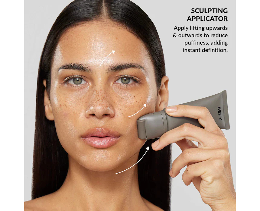 The Glow And Sculpt Face Serum Primer With Niacinamide by Refy is a lightweight, skin smoothing formula designed to hydrate, brighten, and prep the complexion for makeup. Infused with niacinamide, it helps improve the look of texture and uneven tone while creating a subtle sculpted glow. Wear alone for a fresh radiant finish or apply under foundation to enhance longevity and achieve a flawless base.