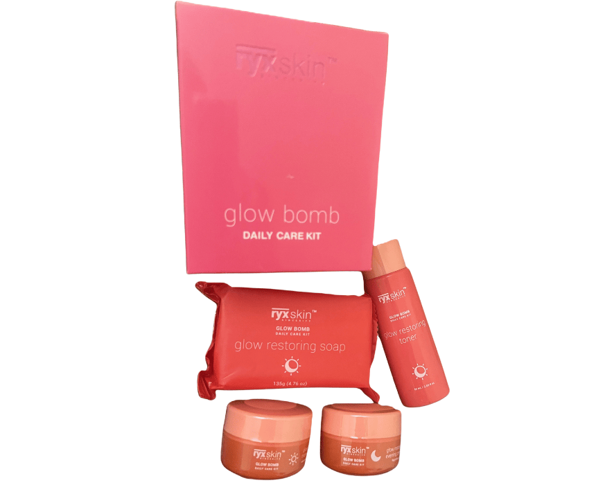 Glow Bomb is a targeted 4-step skincare set specially created for acne-prone skin. It helps fight breakouts, control excess oil, fade acne marks, and restore your natural glow. This easy daily routine works to calm the skin, improve clarity, and promote a smoother, healthier-looking complexion, with visible results in as little as two weeks.