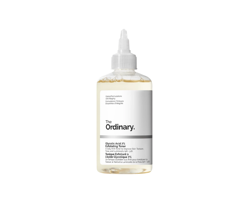 The Ordinary Glycolic Acid 7% Exfoliating Toner gently exfoliates to improve skin texture, tone, and radiance. Formulated with glycolic acid, aloe leaf water, ginseng, and tasmannia extract, it helps remove dead skin cells and refine pores while being alcohol-free and lightweight. Apply in the evening after cleansing, start 1–2 times per week, follow with moisturizer, and use sunscreen during the day.