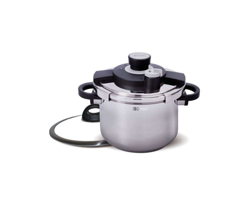 The Go Press 10L Pressure Cooker is crafted from durable 18/10 stainless steel and features a self-locking handle that securely seals the lid under pressure for safe, efficient cooking. It includes an auto pressure release valve and a versatile steamer basket that also works as a grater and trivet, making it suitable for both delicate foods and hearty meals. Compatible with all cooktops including induction, it offers energy-efficient performance for everyday home cooking.