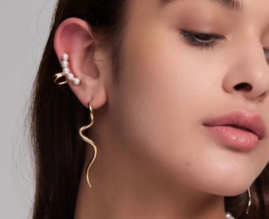The Golden Curve Earrings are crafted from 18K Gold Plated Stainless Steel and feature a graceful curved design that moves elegantly, perfect for adding a touch of mystery and glow to any outfit, can be worn alone for a statement look or paired with other earrings for a layered effect, ideal for day-to-night wear.