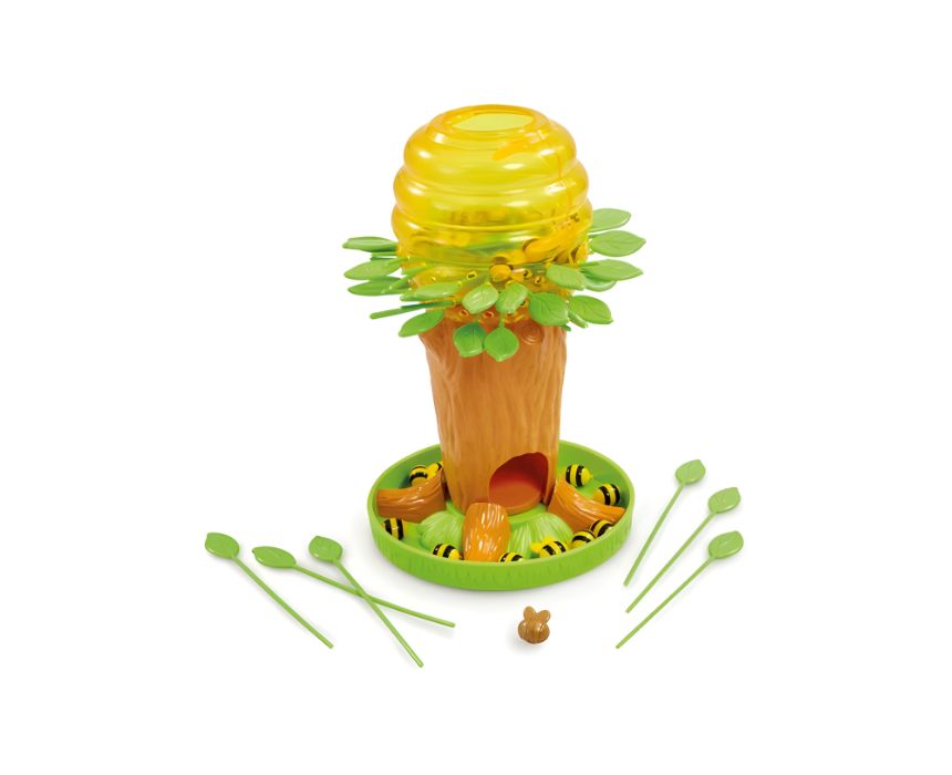 Get ready for hours of buzz-worthy fun with the Golden Honeybee Tree. In this game of skill, players must remove leaves one at a time without letting the bees drop. If you drop the rare golden bee, you get to put all your bees back! The winner is the player with the least bees at the end. This engaging game helps children develop social skills, thinking abilities, and fine motor precision. Perfect for 2-4 players, it includes 32 leaves, 28 little bees, and one special golden bee. Ages 3+.