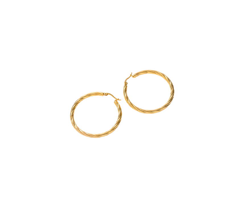 Elevate your style with the Golden Hoops Earrings, crafted from 18K gold-plated stainless steel for a timeless and durable finish. These water-resistant hoop earrings are perfect for everyday wear or special occasions, effortlessly complementing casual and formal looks. Pair them with a sleek bun or loose waves for a chic, sophisticated touch.