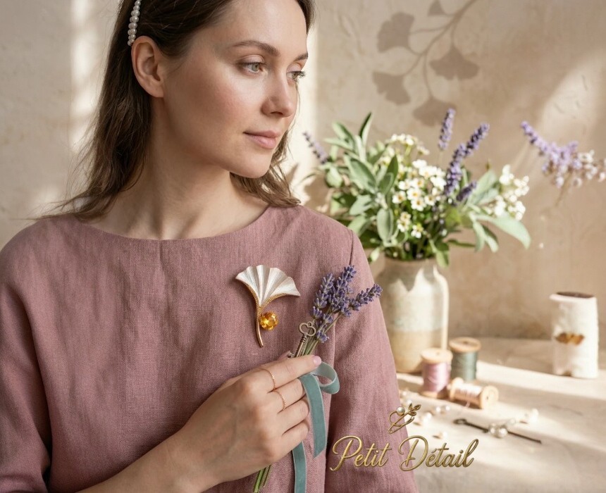 Its elegant shape makes it perfect for styling on blazers, shirts, dresses, jackets, knitwear, scarves, and bags.