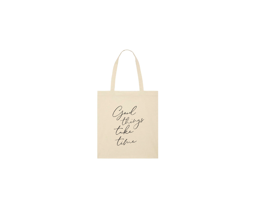 The Good Things Take Time Tote Bag serves as a meaningful and practical companion for carrying daily essentials. Constructed from soft cotton with a 35 by 40 cm capacity, this durable bag is perfect for students, shoppers, and professionals alike. Effortlessly style it with a casual linen set or a chunky knit sweater to emphasize its relaxed and inspirational vibe.