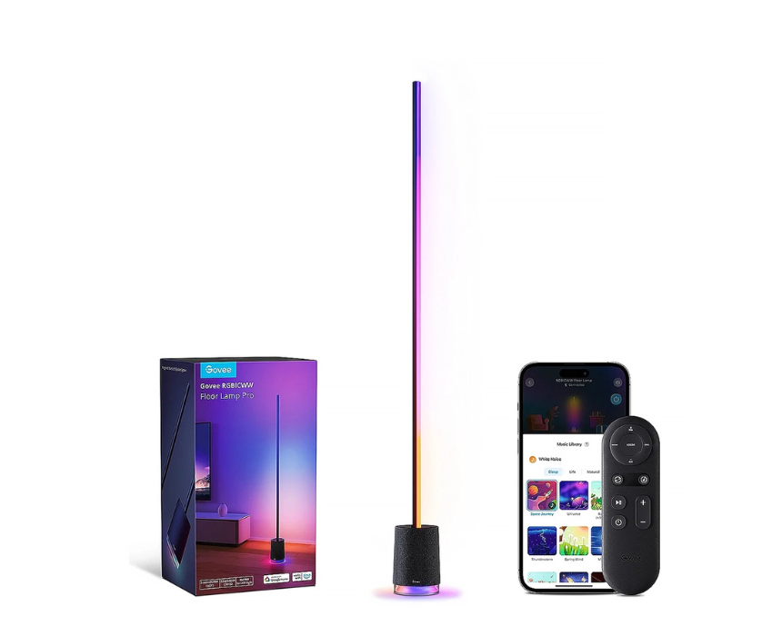 The Govee Floor Lamp Pro delivers premium ambient lighting with advanced RGBIC effects and enhanced brightness for immersive room décor. Through the Govee app, it offers customizable scenes, dynamic animations, and voice assistant support for seamless control. Place it beside your sofa, desk, or entertainment setup to elevate your space with vibrant, professional-grade lighting.