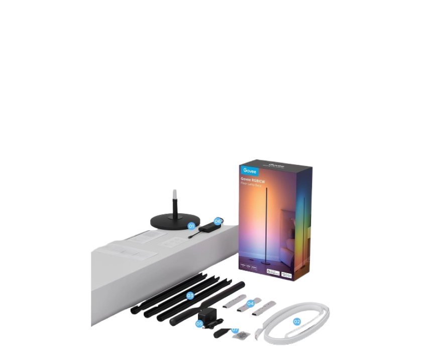The Govee Floor Lamp provides customizable ambient lighting with vivid colors and adjustable effects controlled through the Govee app. Its sleek vertical design fits effortlessly into living rooms, bedrooms, or gaming setups, adding a modern and stylish glow. Place it beside a sofa, desk, or entertainment area to elevate the atmosphere with dynamic lighting.