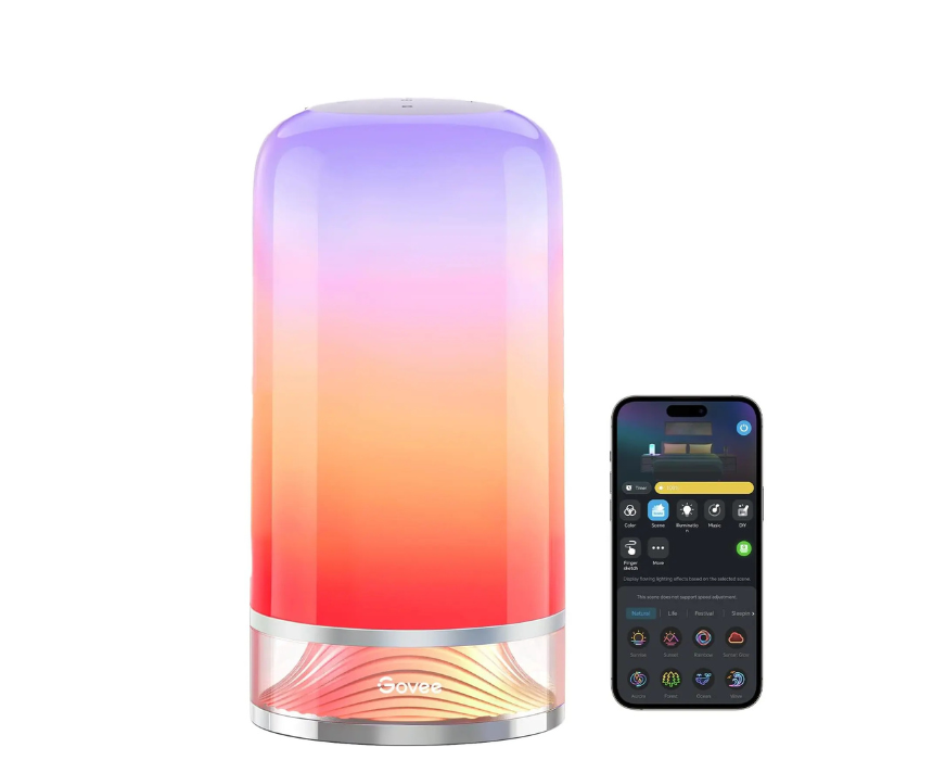 The Govee RGBIC Table Lamp 2 provides vibrant multi-zone lighting with customizable colors and dynamic effects controlled through the Govee app. Its compact and modern design makes it ideal for desks, bedside tables, and gaming setups, adding atmosphere to any room. Place it on a nightstand or workspace to enjoy immersive ambient lighting and personalized mood effects.