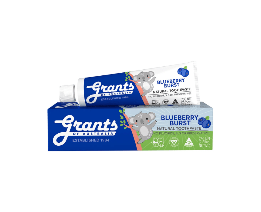 Grants Kids Blueberry Burst Toothpaste has a delicious blueberry flavor that kids love. Packed with Xylitol to help fight cavities, this natural, fluoride-free toothpaste is gentle on young teeth and gums while keeping their mouth fresh and clean.