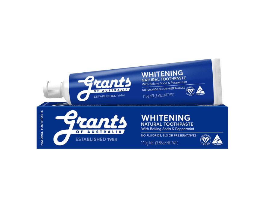 Grants Whitening with Peppermint Toothpaste is designed to keep your smile white and fresh all day and night. With a strong peppermint flavor and the power of baking soda, it helps naturally whiten teeth, remove surface stains, and reduce plaque build-up. This fluoride-free toothpaste is made with natural ingredients and leaves your mouth feeling extra clean and refreshed, without harsh chemicals.