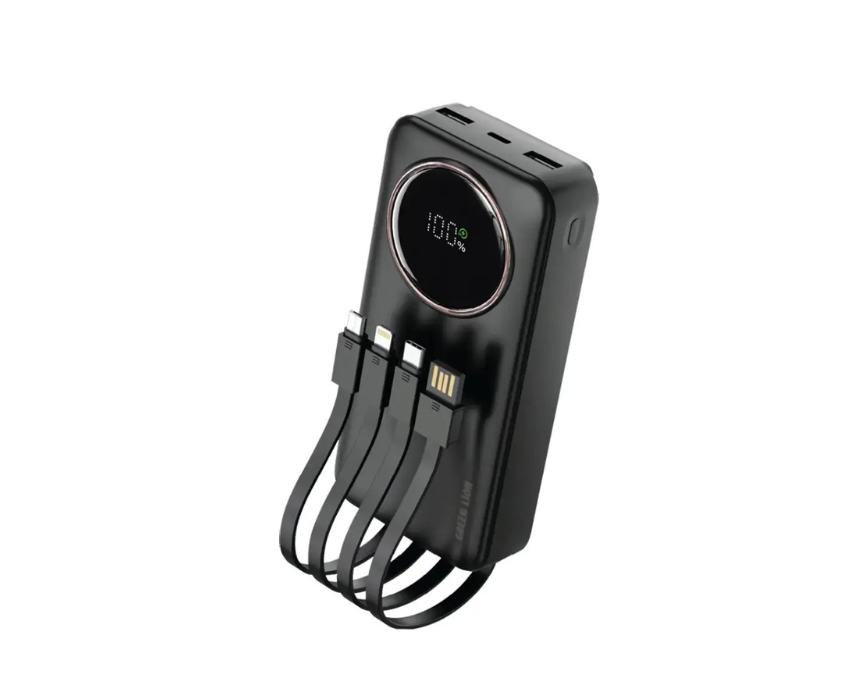 This Green Lion power bank delivers high capacity charging with a 20000mAh battery designed to keep devices powered throughout the day. Featuring fast charging support, multiple output ports, and built in cables, it offers convenient and efficient power for smartphones and other gadgets. Ideal for travel and daily use, it combines reliability with a sleek, practical design.