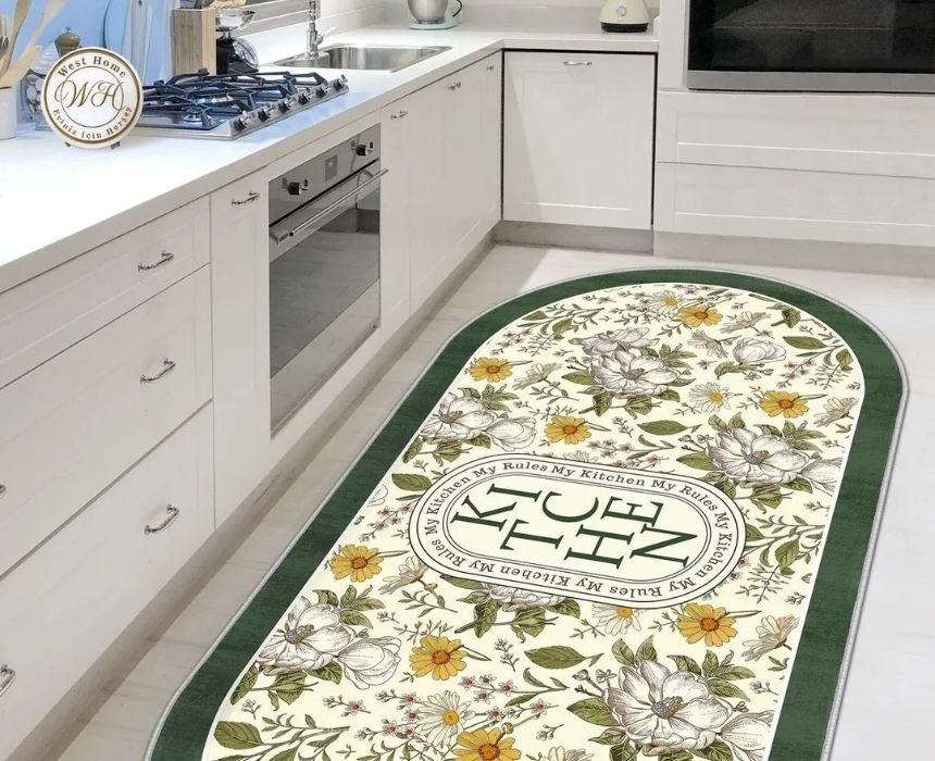 The Green Oval Kitchen Carpet features a washable surface and a non-slip base for safety and easy maintenance. Available in three sizes 80×150 cm, 120×180 cm, and 160×230 cm, it fits perfectly in any kitchen space. Made in Turkey, this carpet adds a sleek, modern touch while providing comfort underfoot and preventing slips, making it ideal for busy cooking areas.