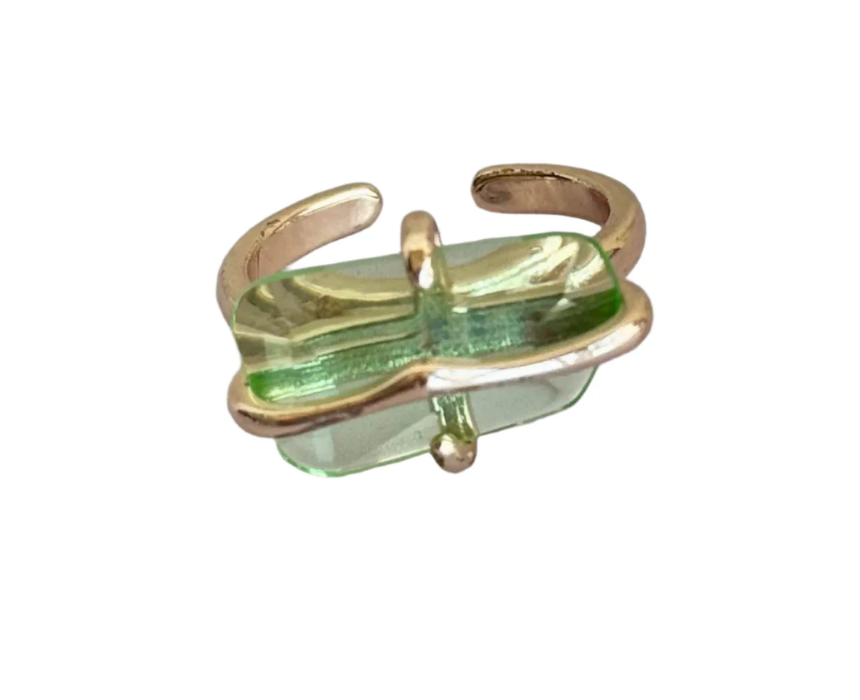 This green stone ring features a vibrant gemstone set in a sleek band, adding a fresh and elegant touch to any jewelry collection. Designed for everyday wear, it can be worn alone as a statement piece or stacked with other rings for a trendy layered look. Its versatile style complements both casual outfits and more refined ensembles effortlessly