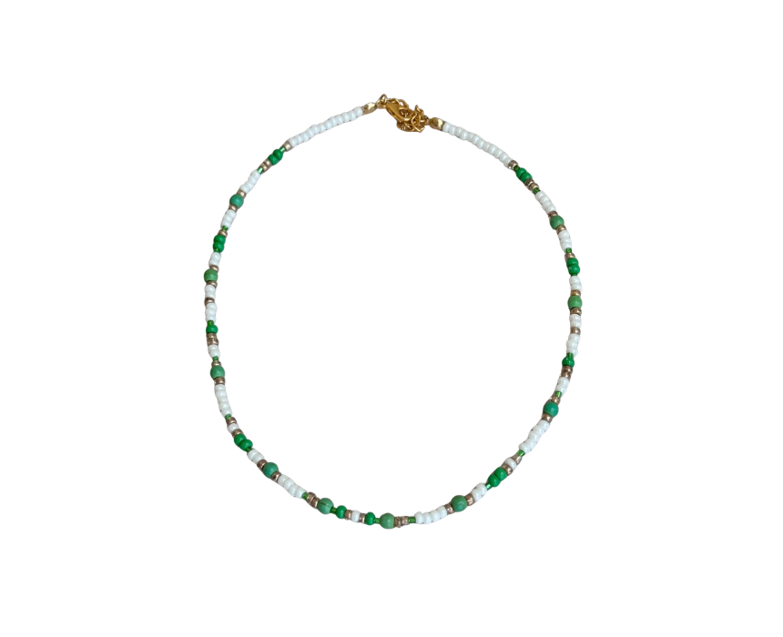 Green & White Beads Choker