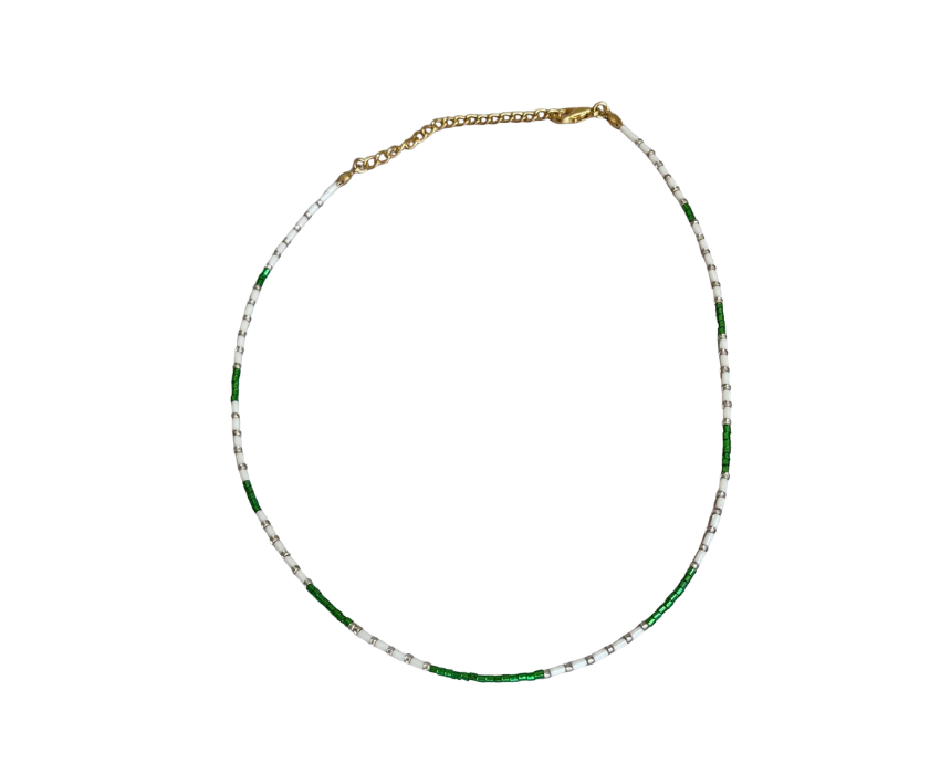 Green & White Beads Choker