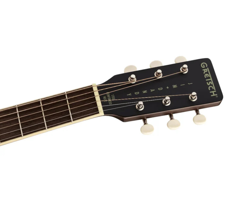 The Gretsch Jim Dandy™ Dreadnought combines vintage charm with modern playability, featuring a slope-shoulder basswood body, X-bracing, and a 24.75-inch scale length for comfortable playing. It has a “C”-shape nato neck, walnut fingerboard with pearloid dot inlays, vintage-style pinned bridge, and 1950s-style open-gear tuners, delivering rich tone and classic aesthetics. Ideal for blues, folk, or swing, this compact dreadnought offers a nostalgic feel and reliable performance for beginners and seasoned players alike.