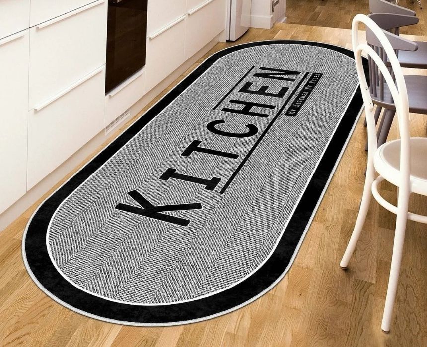 The Grey Oval Kitchen Carpet features a washable, non-slip base ensuring safety and easy maintenance, available in three sizes: 80x150cm, 120x180cm, and 160x230cm. Made in Turkey, this durable carpet adds a subtle touch of style to any kitchen while providing comfort underfoot. It pairs well with modern or minimalist kitchen designs, enhancing both functionality and aesthetic appeal.