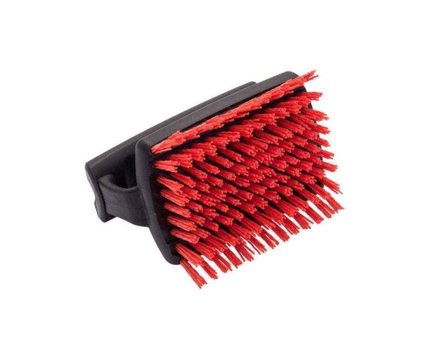 The Char-Broil Safer Hand-Held Grill Brush features bright red, grit-infused nylon bristles that are five times thicker than standard brushes, providing safe and effective cleaning without metal wires. Its easy-grip handle allows secure use over your hand, while the durable bristles are lab-tested to 15,000 cycles without breakage or fallout. Designed for use on cool grill grates, this brush helps maintain your grill and prolong its life.
