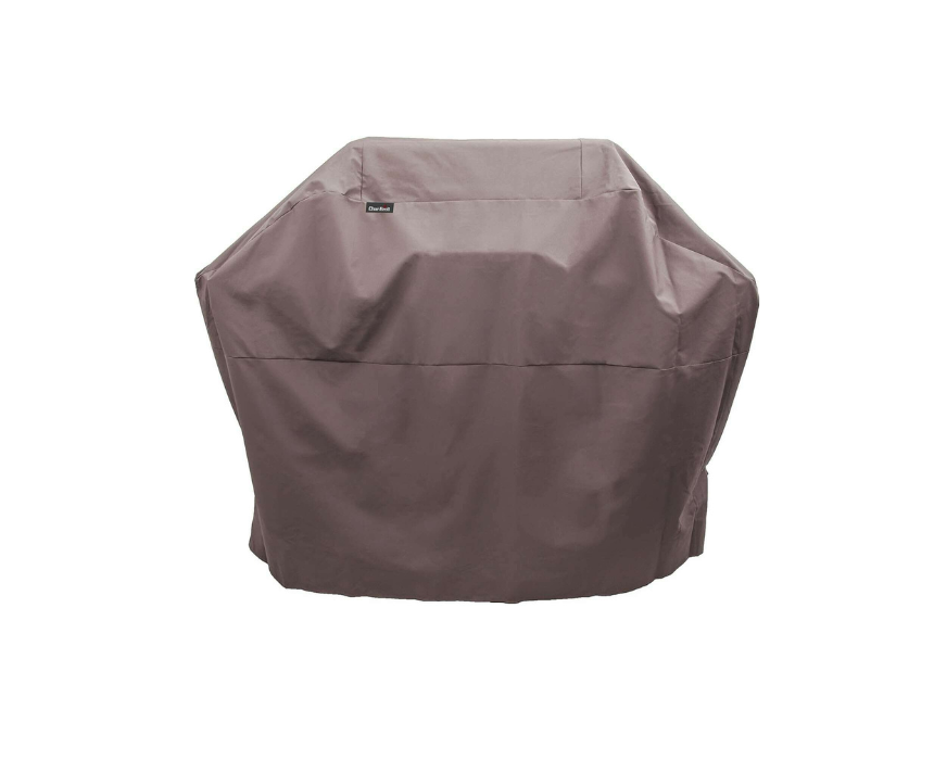 Protect your grill year-round with the Tan 3-4 Burner Performance Grill Cover, designed to shield from harsh weather and UV damage. Made from heavy-duty 18 mil polyester with a sun-fade protective liner and sealed seams for water resistance, it features long side straps for a secure fit. Suitable for 3-4 burner gas grills, large charcoal grills, and smokers up to 62 inches wide from brands like Char-Broil, Weber, Broil King, and more.