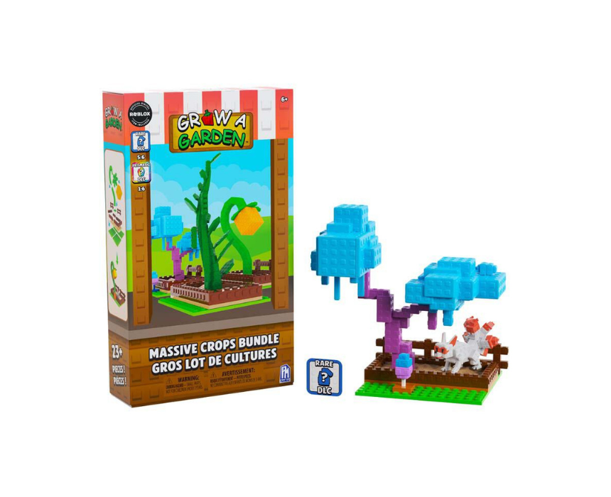 This buildable crop blind bag bundle includes a planting plot and mini crop inspired by a popular garden themed game. Each pack offers a surprise buildable set along with a DLC code redeemable for exclusive in game rewards. Ideal for collectors and fans, it delivers creative building fun with an exciting unboxing experience.