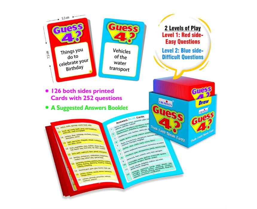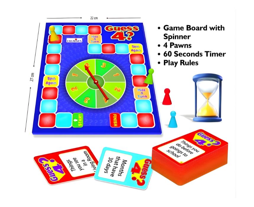 Challenge your vocabulary with Guess 4, a high-speed game that is both entertaining and educational. Players must provide four correct answers to each question card before the timer runs out. With 252 curriculum-based and day-to-day topics, it helps children revise their knowledge and learn new facts. The game can be played with the board for a full race or with cards only for quick fun. It is a fantastic way to stimulate quick thinking and memory recall. Ages 6 years and over.
