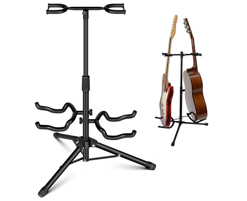 The Guitar Stand with Multiple Neck Holders securely stores several guitars at once, keeping instruments organized and easily accessible. Its sturdy, space saving design works well in home studios, practice rooms, or stage setups and can be styled with other music gear for a clean, professional display.