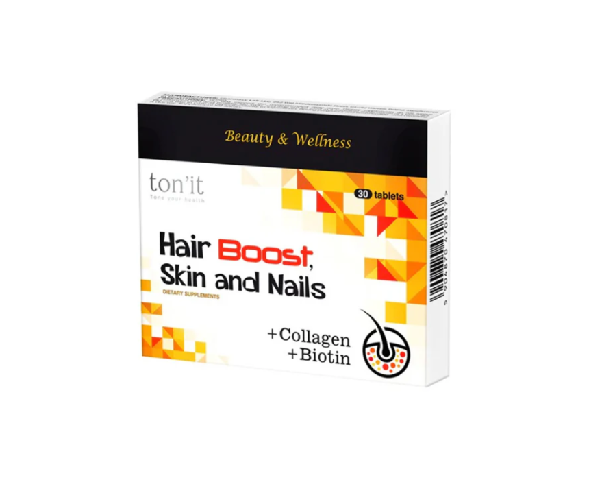 Hair Boost Skin & Nail is a premium supplement designed to support the health and appearance of hair, skin, and nails. Enriched with vitamins, minerals, and amino acids, it helps strengthen hair, promote radiant skin, and maintain strong nails. Take one tablet daily as part of your wellness routine.