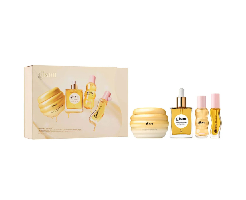 This complete hair and lip care set features bestsellers powered by Mirsalehi Honey, designed to hydrate, smooth, and enhance natural shine. Suitable for all hair types, it helps reduce frizz, restore moisture, and leave a lightweight glossy finish while delicately scenting hair. Apply the mask for deep conditioning, use a few drops of oil for shine, spritz perfume for fragrance, and finish with lip oil for hydrated glow.