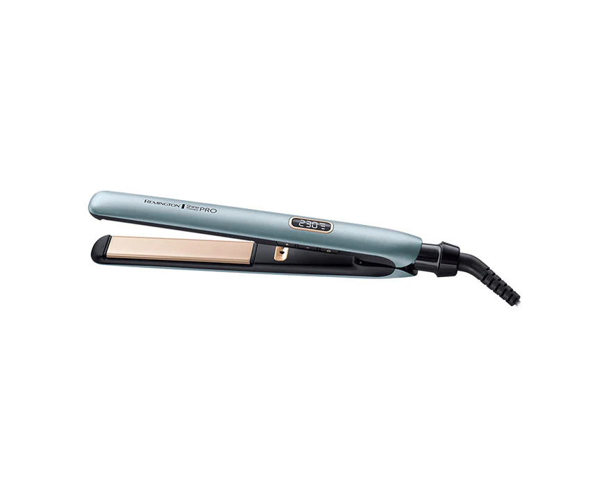 The Shine Therapy PRO Straightener smooths hair in just 15 seconds with 110mm floating plates, turbo temperature boost, and memory/lock functions. Its advanced ceramic coating infused with Moroccan Argan Oil and 3x Shine Enhancing Technologies eliminates frizz for glossy, healthy-looking hair. Features 3m swivel cord, hinge-lock, worldwide voltage, auto shut-off, and protective storage sleeve for safe, convenient styling.