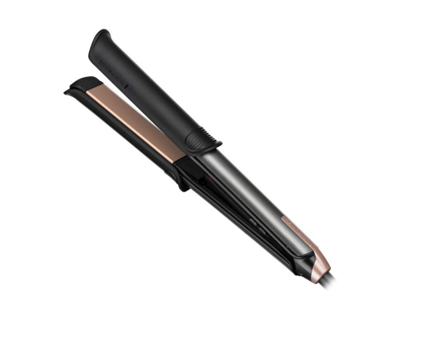 The Remington ONE Straight & Curl Styler is a versatile 2-in-1 tool designed to create smooth straight styles, soft curls, and beachy waves with ease. Featuring FlexiCovers for safe mode switching, 110mm ceramic straightening plates, and a 32mm curling barrel with anti-slip coating, it heats up in 20 seconds and includes digital temperature control, a styling glove, and a luxury heat-resistant pouch. Perfect for fast, long-lasting styles, it can be used on dry hair for everyday elegance or special occasions.