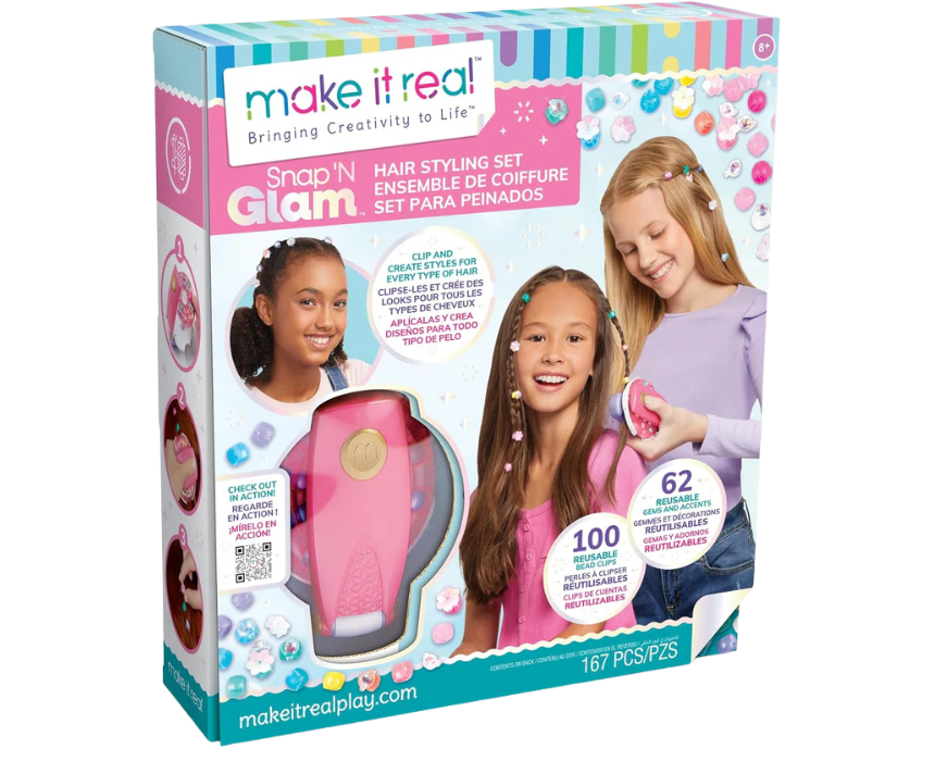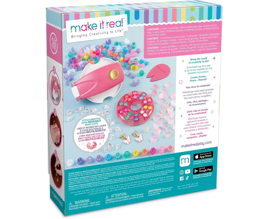 This bead clip hair styling kit includes 100 reusable clips with butterfly, gem, and flower accents, perfect for creating fashionable looks on any type of hair. Easy to use in three steps—load, clip, style—and simple to remove without hassle, it lets tweens restyle endlessly. A fun and creative gift idea, it encourages self-expression and makes a stylish accessory set for any occasion.